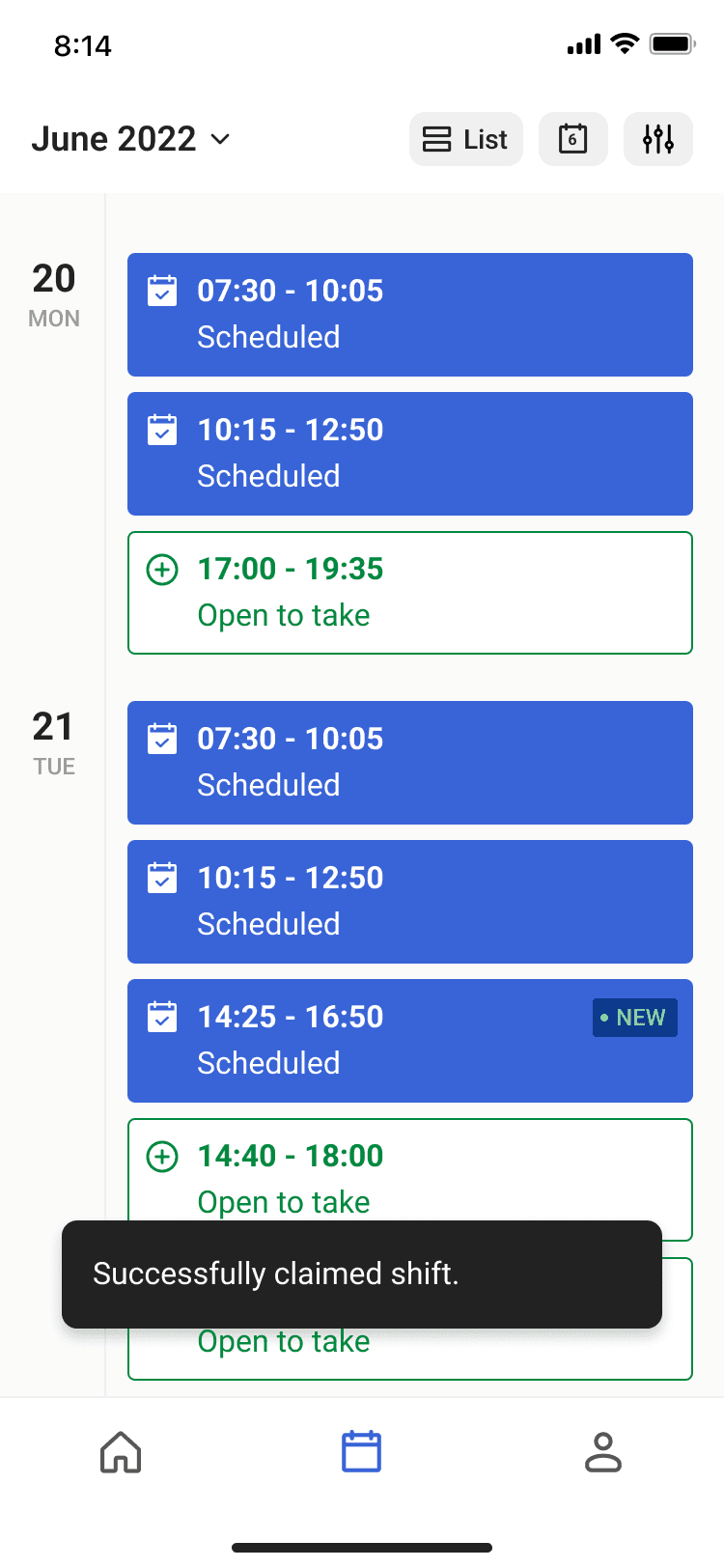 We observed that workers often claimed multiple shifts, which led to planning challenges, especially for popular shifts. In practice, shift swaps frequently happened last minute through external tools like WhatsApp.